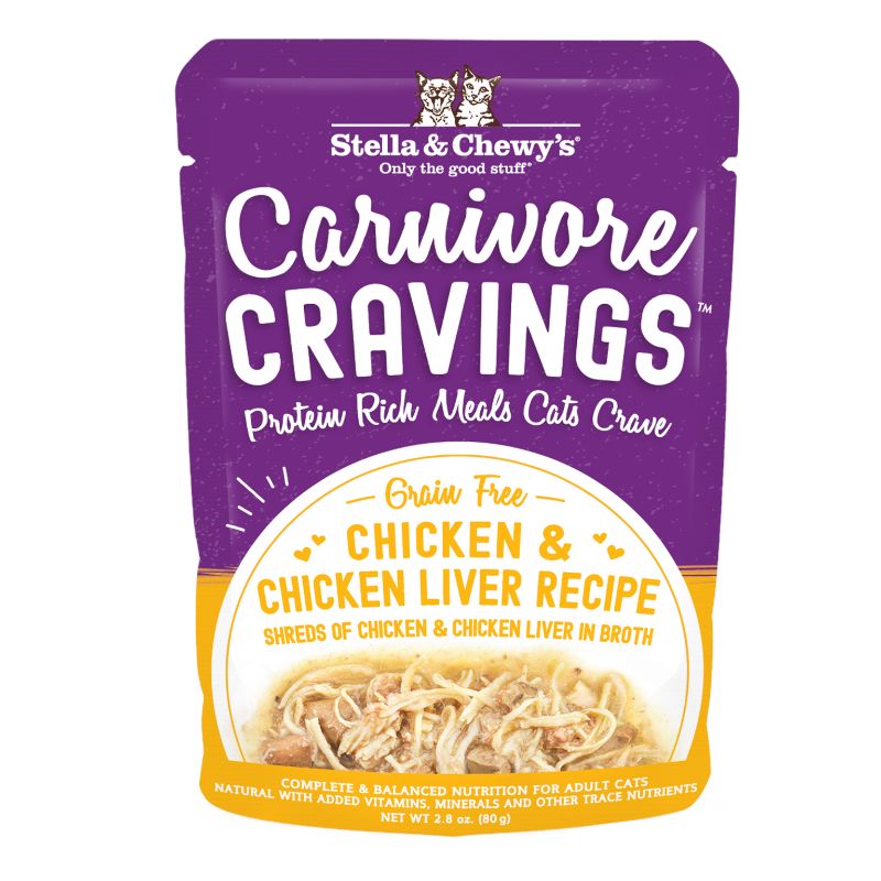 Stella & Chewy’s Carnivore Cravings Shredded Chicken & Chicken Liver In Broth Wet Cat Food 2.8oz Pouch
