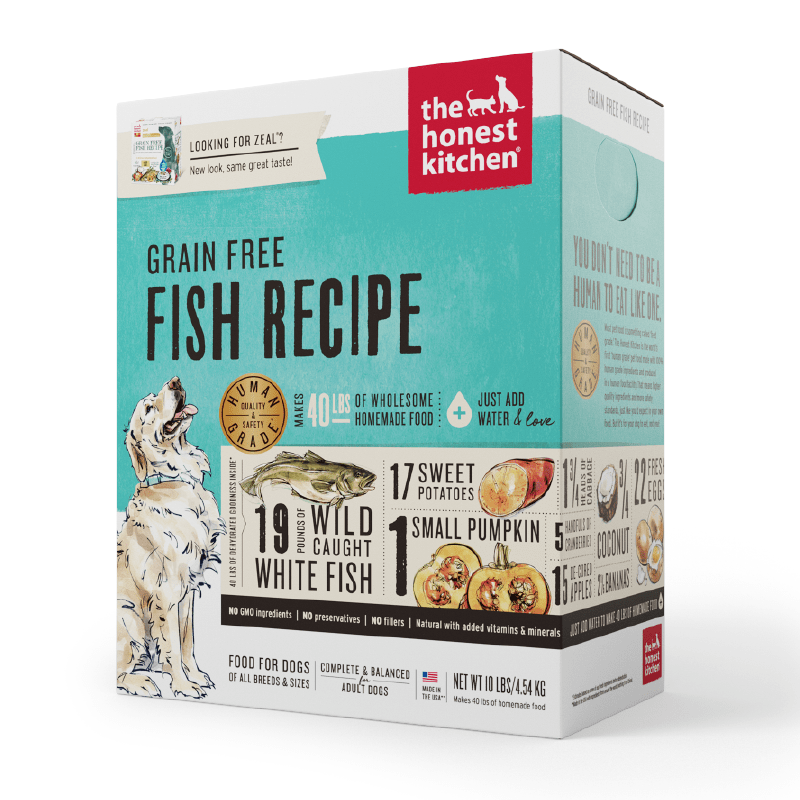 Adult dogs will eat up this wild caught, Marine Stewardship Council Certified white fish plus antioxidant-rich produce—all dehydrated for prime nutrient retention and superior bio-availability. And hey, we’re not trying to fish for compliments or anything, but our grain free fish recipe is low carb, low calorie, and 100% human grade—as always.