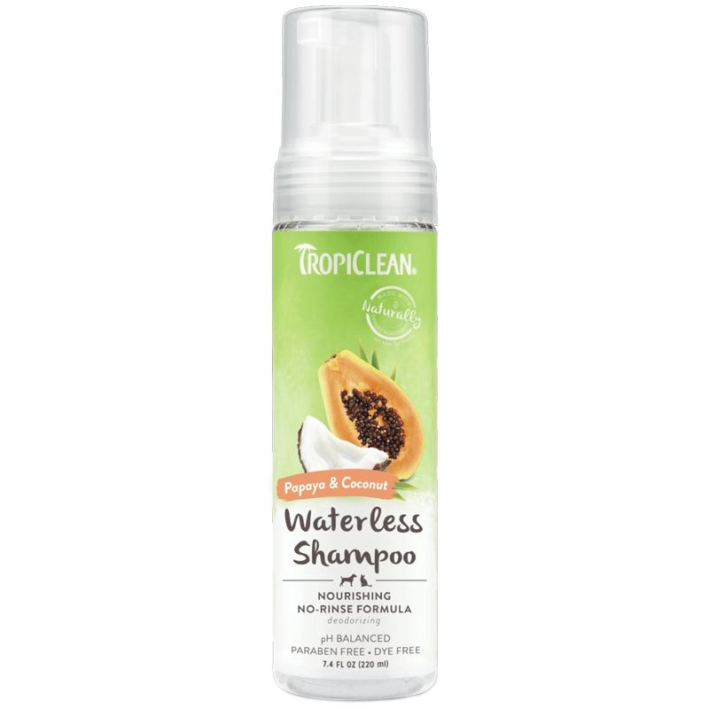 TropiClean Papaya and Coconut Waterless Shampoo is enriched with a unique blend of botanical ingredients to help nourish skin and relax tangled hair for easy brushing between baths. The sweet scent of papaya and coconut leaves your pet smelling fresh and ready for cuddles!