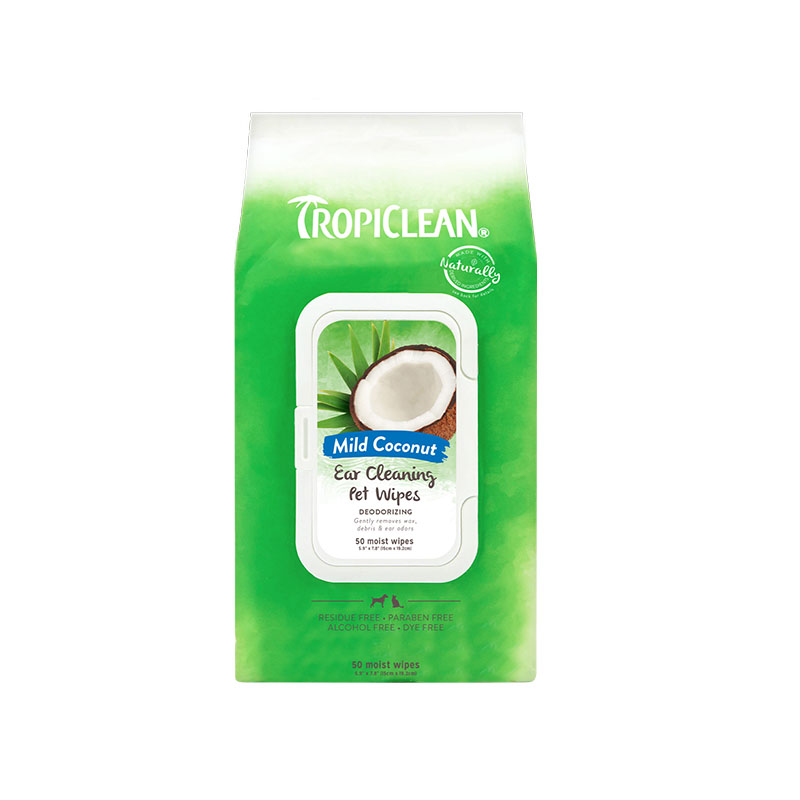 TropiClean Ear Cleaning Wipes gently wash and freshen your pet’s ears with less mess. Our mild coconut cleanser gently lifts away wax and debris, while also helping to reduce ear odor. It’s a good idea to clean your pet’s ears weekly to help reduce risk of ear infections and irritation.