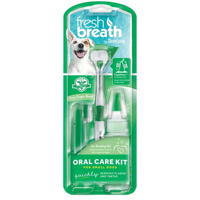 Oral care is about more than making your pets’ smiles sparkle—it’s an important component of their overall health. In fact, 80% of dogs begin to show signs of oral disease by age 3. Our Fresh Breath Oral Care Kit includes our TripleFlex™ Toothbrush, Finger Brush and our Brushing Gel for Dogs. Our Brushing Gel for Dogs is infused with green tea leaf extract that naturally defends against plaque and tartar and clings to their teeth for a superior clean. Our TripleFlex Toothbrush cleans 3x faster with its easy 360-degree bristles. Also included is our Finger Brush which allows you to gently clean helping dissolve plaque and tartar. Clean teeth, healthy mouth, happy dog.