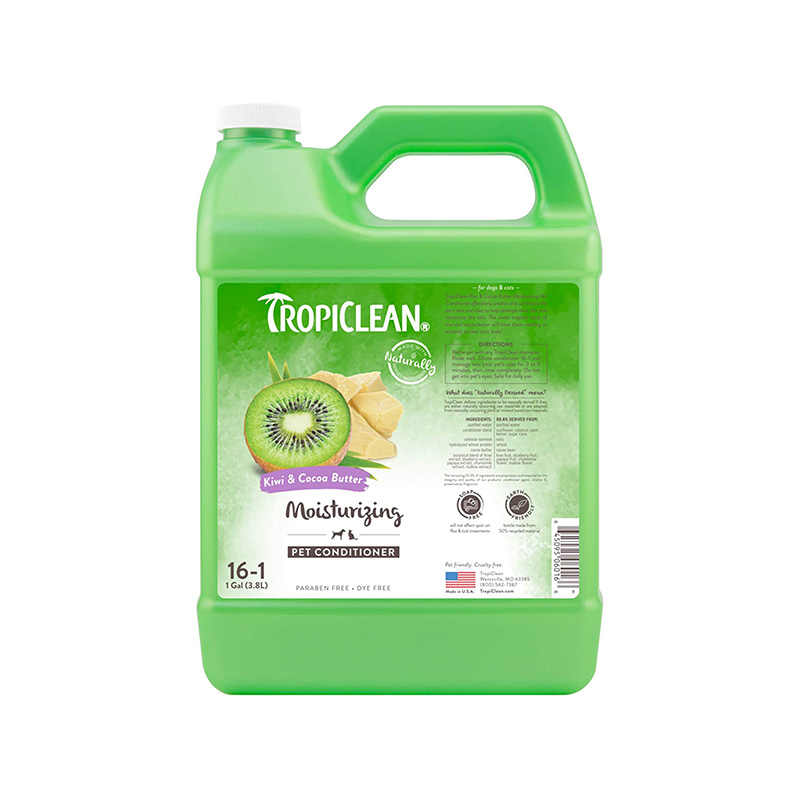 If you’re used to TropiClean’s Kiwi Conditioner, this is the new look for your favorite classic! TropiClean Kiwi & Cocoa Butter Pet Conditioner keeps your pet’s coat silky, shiny and smelling fresh. Cocoa butter and kiwi provide natural moisture for a coat that loves to be cuddled. Oatmeal and mallow soothe and effectively nourish skin while papaya keeps your pet smelling as lovely as they look. Great for dogs and puppies, cats and kittens, and safe for their humans, too!