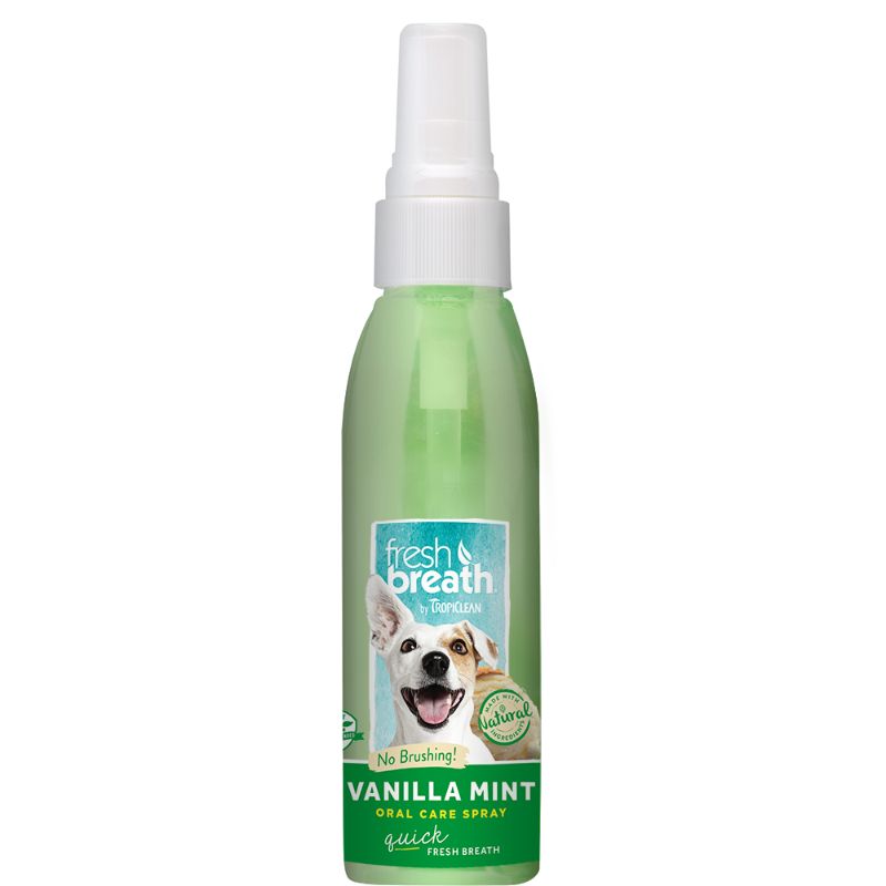 Give your pup’s mouth a spritz with TropiClean’s Fresh Breath Vanilla Mint Oral Care Dog Spray! This bad-breath fighting formula is made with natural ingredients like purified water and green tea leaf extract and has a tasty and refreshing vanilla mint flavor! The best part about this spray is that there’s no brushing required—simply remove the cap and press on the nozzle to release an even mist into your canine companion’s mouth. Your dog will love the taste and you’ll love knowing that this spray is recommended by veterinarians!