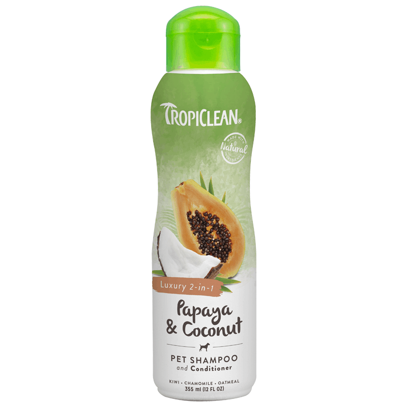 Our Papaya & Coconut Shampoo and Conditioner is made with papaya, coconut, and other tropical ingredients to pamper your pet in a rich, luxurious lather. Our mild coconut cleanser is one-of-a-kind, just like your pet. Coconut gently cleanses fur of dirt and oils from playtime and head pats, while papaya and kiwi replenish the natural moisture balance of the skin and coat. Rich botanical conditioners result in a healthy sheen, while preventing dry skin and tangled fur. With routine bathing, this luxury 2-in-1 shampoo and conditioner will keep your pet’s skin and coat stay soft, shiny, and looking great.