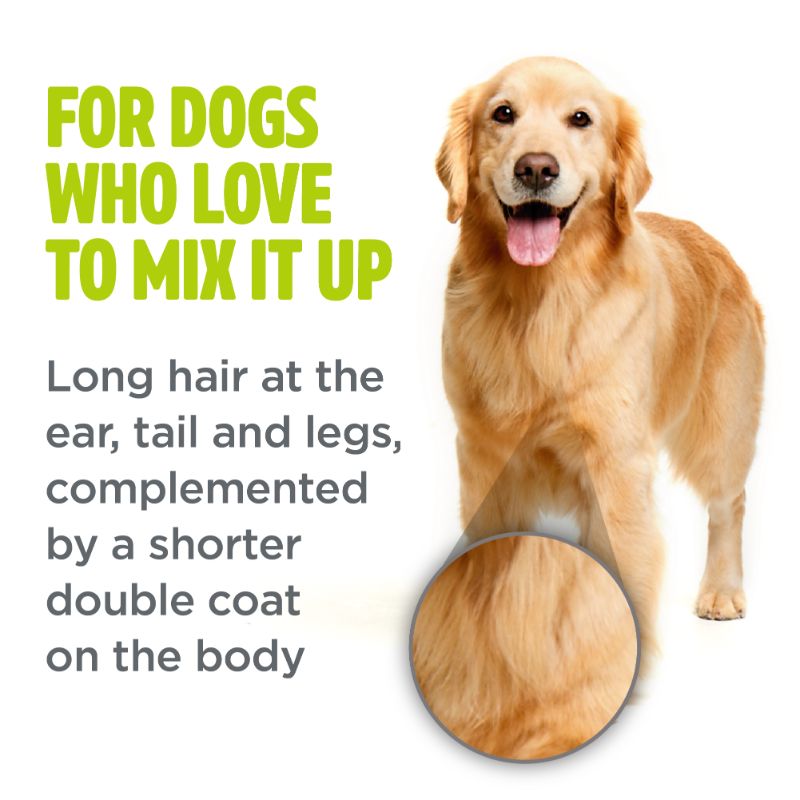 For a furry friend who looks as great as he smells, look no further than TropiClean PerfectFur™ Combination Coat Dog Shampoo. This shampoo was formulated for dogs with long hair on their tail, legs, ears, and shorter fur on their bodies. It locks in moisture and reduces excess shedding, giving canine companions shinier, fuller coats. Best of all, even super smelly sidekicks will get squeaky clean, thanks to the deodorizing formula. This TropiClean shampoo is definitely the way to go for a handsome, hygienic hound!