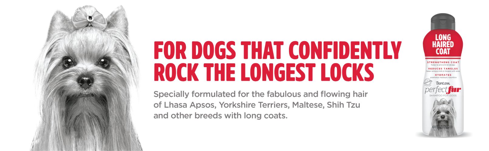 Protect your BUDDY’s stunning long coat by using TropiClean PerfectFur™ Long Haired Coat Dog Shampoo at bath time! This special formula was made just for dogs with long coats. After application, it works to quickly smooth hair follicles, making it easier to brush out tangles and mats. The shampoo also locks in moisture and increases hair elasticity to prevent breakage. To give your little Rapunzel a glamorously glossy coat, look no further than TropiClean’s Long Haired formula!