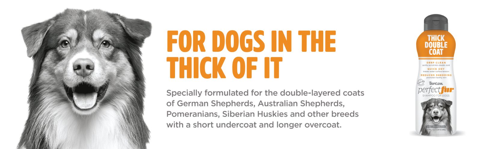 With TropiClean PerfectFur™ Thick Double Coat Dog Shampoo, you can say goodbye to the days of backbreaking bath time. Specially formulated for pals with super thick coats, this shampoo slips between layers of tightly packed fur, loosening dirt and debris. It also exfoliates your dog’s skin and strengthens their hair follicles to reduce unnecessary shedding. For a deeper clean and a great-smelling, handsome hound, this TropiClean formula is your best bet!