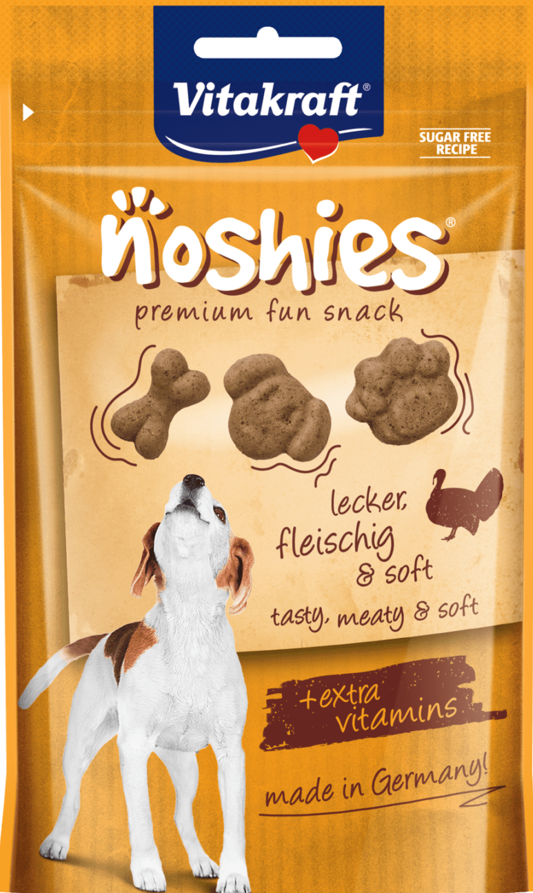 Packed filled with essential vitamin B and a high turkey meat content, Vitakraft’s soft and tasty Noshies are sure to pamper your fluffy, four-legged friends. The premium mix also contains 3 fun dog-shaped snacks to delight your dogs!