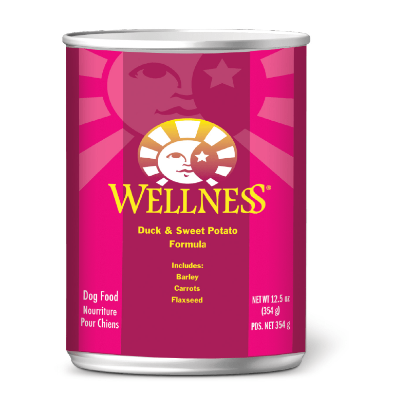 Wellness Duck & Sweet Potato Formula Dog Food is formulated to meet the nutritional levels established by the AAFCO dog food nutrient profiles for growth and maintenance, except for growth of large size dogs (70lbs or more as an adult).