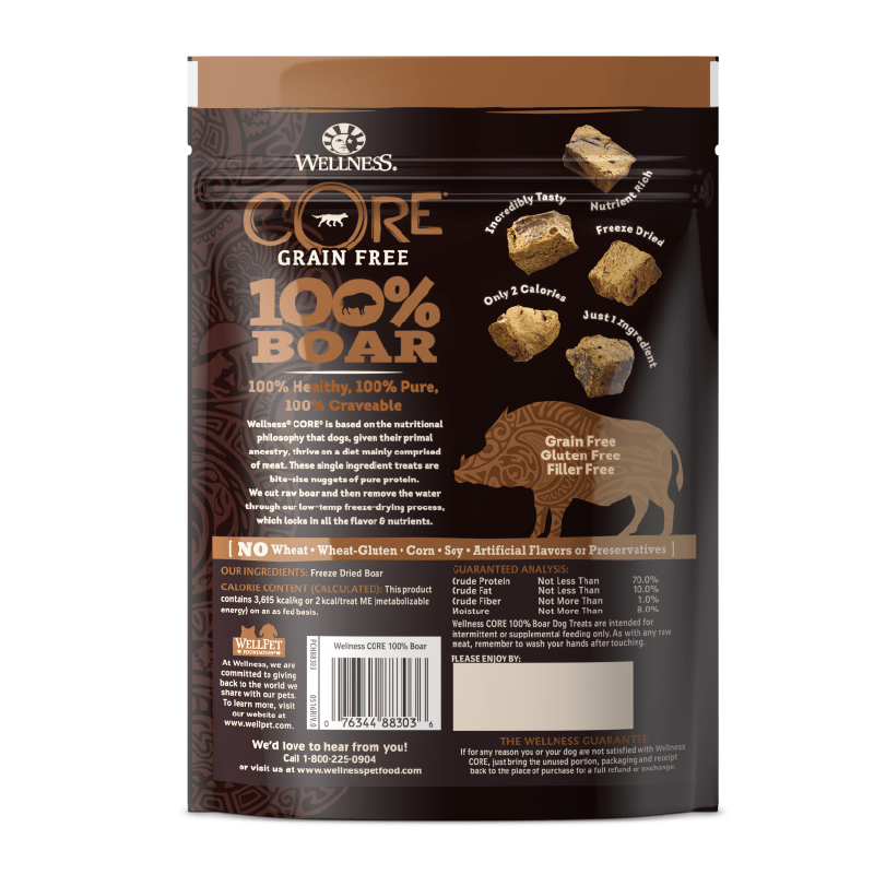 Wellness CORE Boar Dog Treats are intended for intermittent or supplemental feeding only.