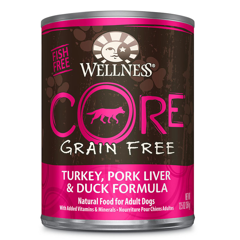 Wellness® CORE® Turkey, Pork Liver & Duck Formula Adult Dog Food is formulated to meet the nutritional levels established by the AAFCO Dog Food Nutrient Profiles for maintenance.