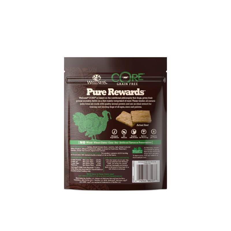 Wellness CORE Pure Rewards are all-natural grain free jerky treats made with premium proteins and no wheat, wheat gluten, corn, soy, artificial colors or preservatives.