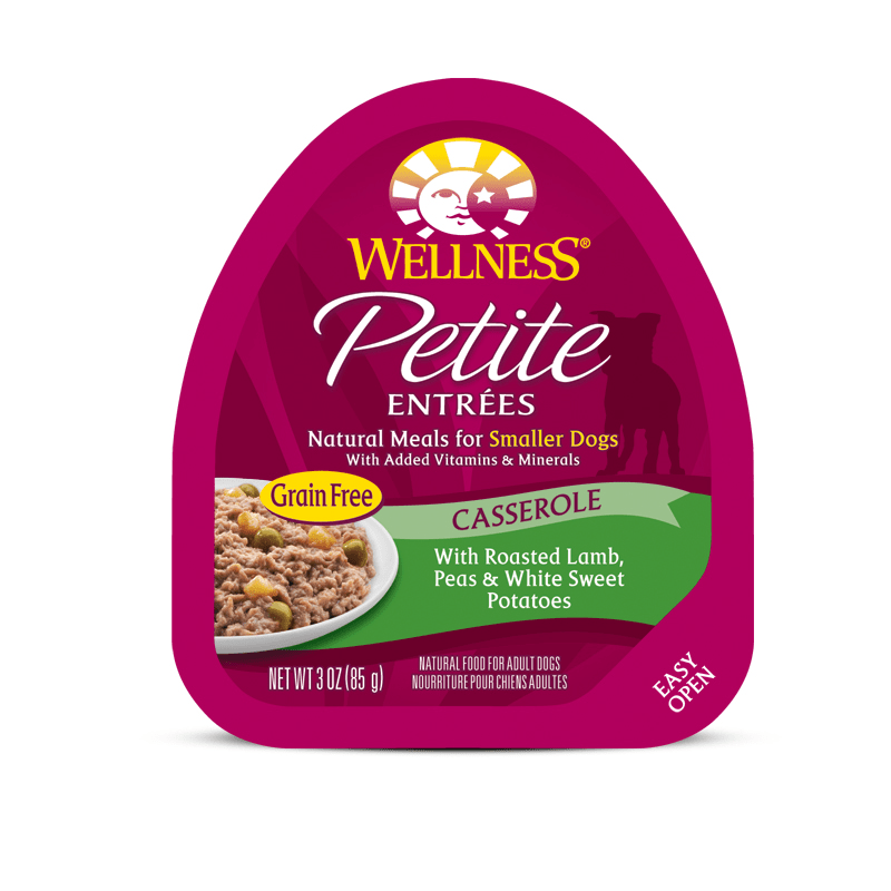 HomeDogsFoodWet Food Wellness Petite Entrées Casserole Roasted Lamb, Peas & White Sweet Potatoes Cup Tray Small Breed Wet Dog Food 3oz