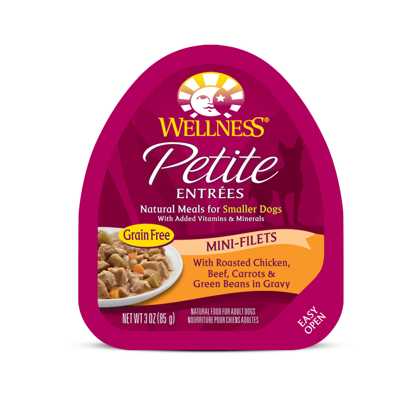 Wellness Petite Entrées Mini-Filets Roasted Chicken, Beef, Carrots & Green Beans in Gravy Cup Tray Small Breed Wet Dog Food 3oz