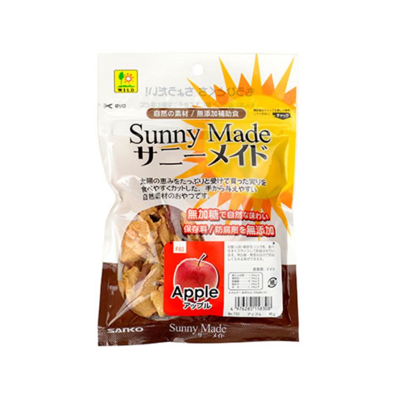 Wild Sanko Sunny Made Young Apple is the perfect snack for communication time with pet. Sweet and sour fresh apples are sliced ​​and dried to eat easily.