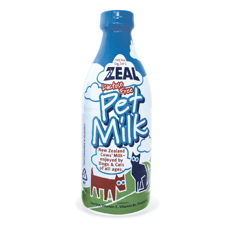 Zeal® Lactose Free pet milk is specifically formulated for: adult dogs and puppies and adult cats and kittens. Made from fresh New Zealand whole cows’ milk, it is rendered 99.5% lactose free, therefore easy to digest for pets while maintaining all the natural goodness and taste.