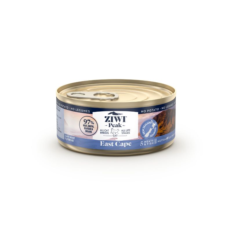 Featuring 5 meats and fish from New Zealand’s East Cape, this recipe combines free-range and grass-fed mutton and goat, along with a blend of wild-caught and whole fish – kahawai, white trevally, and blue mackerel. The first place on earth to see the sunrise, New Zealand’s spectacular East Cape is the inspiration behind ZIWI® Peak’s East Cape Provenance recipe. It’s a perfect topper or complete meal that cats are sure to love.