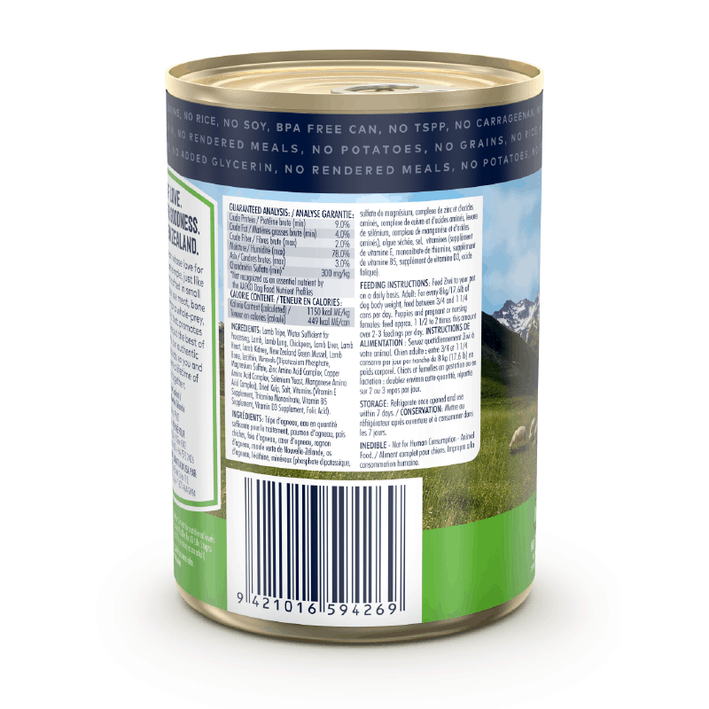 ZIWI Peak Tripe & Lamb Recipe meets the nutritional levels established by the AAFCO Dog Food Nutrient Profiles.