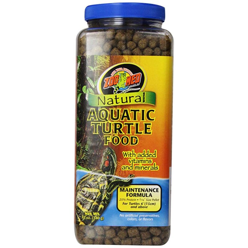 Zoo Med Natural Aquatic Maintenance Formula Turtle Food is the #1 aquatic turtle food. It’s a natural pellet food that contains no artificial preservatives, colors, or flavors. This food has been scientifically formulated with 25% protein to meet the dietary requirements of adult aquatic turtles with a shell length of 6 inches or more. These pellets float, making it easier for aquatic turtles, who prefer eating at the water surface, to locate their food.