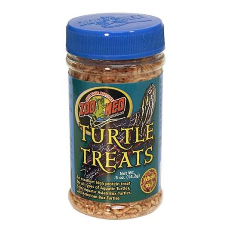 Zoo Med Turtle Treats contain whole krill. This formula is an excellent high protein treat for most aquatic and semi-aquatic turtles.